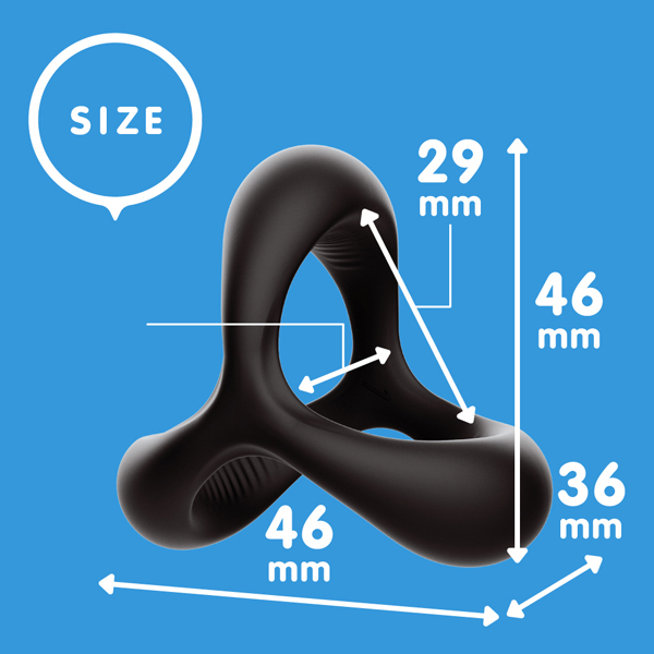 強めの締め付けでドバーッっと出る感を高める!弾力性のある高品質ハードシリコンを使用したペニス用リング。デルタ形状が根元、サオ、タマの3点をしっかり締め付け!素材は嫌な臭いがなく、特有のスベスベ感で毛の巻き込み緩和にも最適!リング内側には滑り止め付きでズレを軽減しつつ皮戻り防止にも◎早イキ防止、持続力を高めたい男性に。重量10g