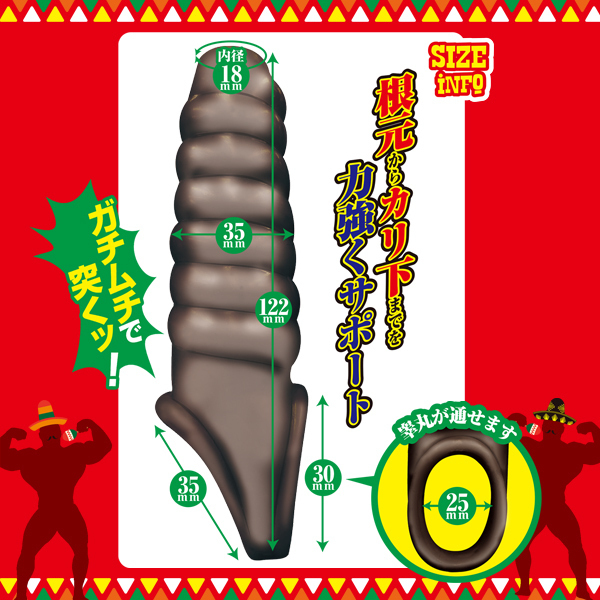 ¥460(定価1045)パッケージ:16.5×5.0×5.0cm 本体:全長12.2cm・最大径3.5cm・亀頭露出穴内径1.8cm・睾丸装着穴内径2.5cm