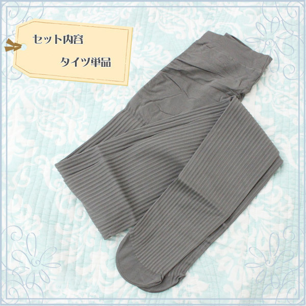 【160円★数量限定】国産80デニールリブタイツ グレー<お一人様1点限り>