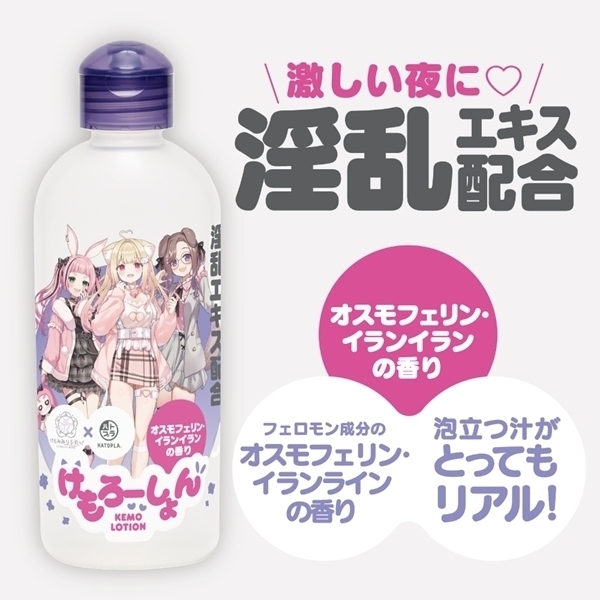 バーチャルリラクゼーションサロン「けもみみりふれっ!」とのコラボで生まれた特別なローションです♪香りはオスモフェリンとイランイランをブレンドし、心を落ち着ける癒しの時間を演出します!泡立つ仕様で、使用中の楽しさもプラス♪粘度や使用感にもこだわり、肌なじみの良い仕上がりです!ワンタッチキャップ採用で、片手でもスムーズに使えます♪プレイ中の継ぎ足しにも便利な設計です!肌に触れるものだからこそ、安心の国産素材と国内生産にこだわりました♪香りと使いやすさを兼ね備えた一本で、毎日のリラックスタイムをちょっと特別にしてみませんか!