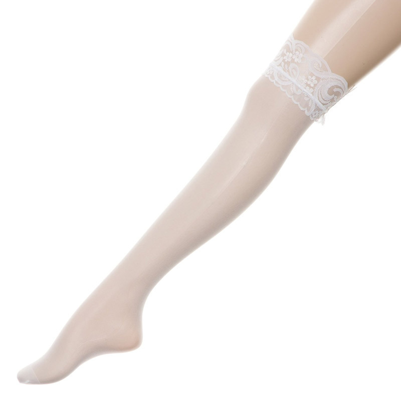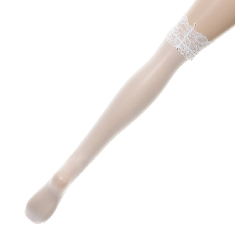 ほんのり肌が透き通る!コスプレ以外でも使用可能なピュア感たっぷりの白ストッキング。●履き口は清楚なフラワーストレッチレース●つま先から太股まで優しくフィット●脚の色ムラをカバーして魅力的に見せます●ガーターベルトと一緒に着ければもっと大人っぽくなれます。ナース服やメイドコスチュームと相性がよいシアーなストッキングです。